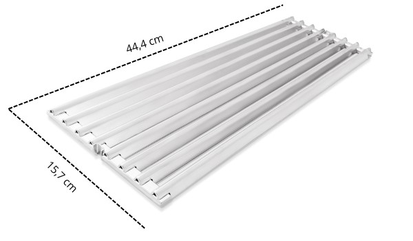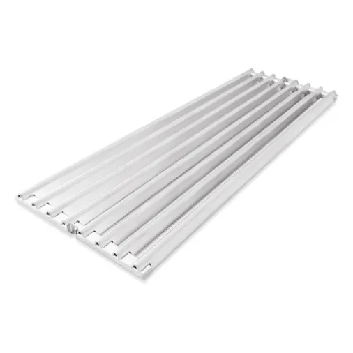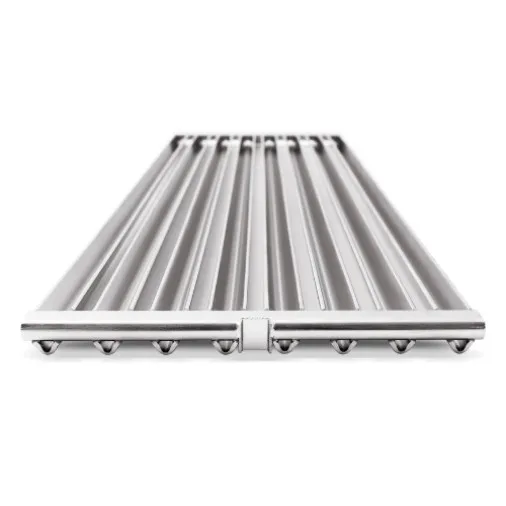 Ruszt wykonany z kątowników ze stali szlachetnej doskonale pasuje do grilli gazowych z serii Baron™ oraz Crown™. Choć stal odbiega od żeliwa pod względem zdolności akumulowania ciepła, wyróżnia się większą trwałością i odpornością na uszkodzenia, dzięki czemu lepiej znosi codzienne użytkowanie, nawet przy mniej regularnej konserwacji. Dwustronna konstrukcja (strona stożkowa i rynienkowa) zapewnia wszechstronność grillowania i pozwala dostosować ruszt do rodzaju przygotowywanych potraw. Ruszt można wygodnie przenosić za pomocą uchwytu wielofunkcyjnego.